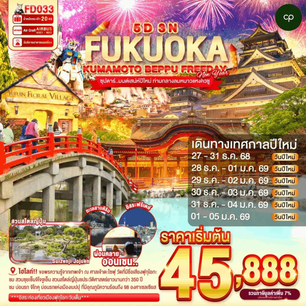 เทศกาลชมงานประดับไฟ ฮานะโนะมิยาโกะ พร้อมฉากหลังเป็นภูเขาไฟฟูจิ หมูบ้านโอชิโนะฮักไก พร้อมนั่งกระเช้าลอยฟ้าฮาโกเนะ โคมากะตาเกะ ชมยอดเขาที่สูงที่สุดขิงฮาโกเนะเพื่อชมภูเขาไฟฟูจิ มหาสมุทรแปซิฟิก ศาลเจ้าสีรุงะโอะกะฮะจิมัง ย่านเมืองเก่าชิบามาตะ ย้อนยุคไปกับย่านโอไดบะ และ ชินจูกุ พร้อมเช็คอิมแลนด์มาร์คแมวยักษ์ 3 มิติ